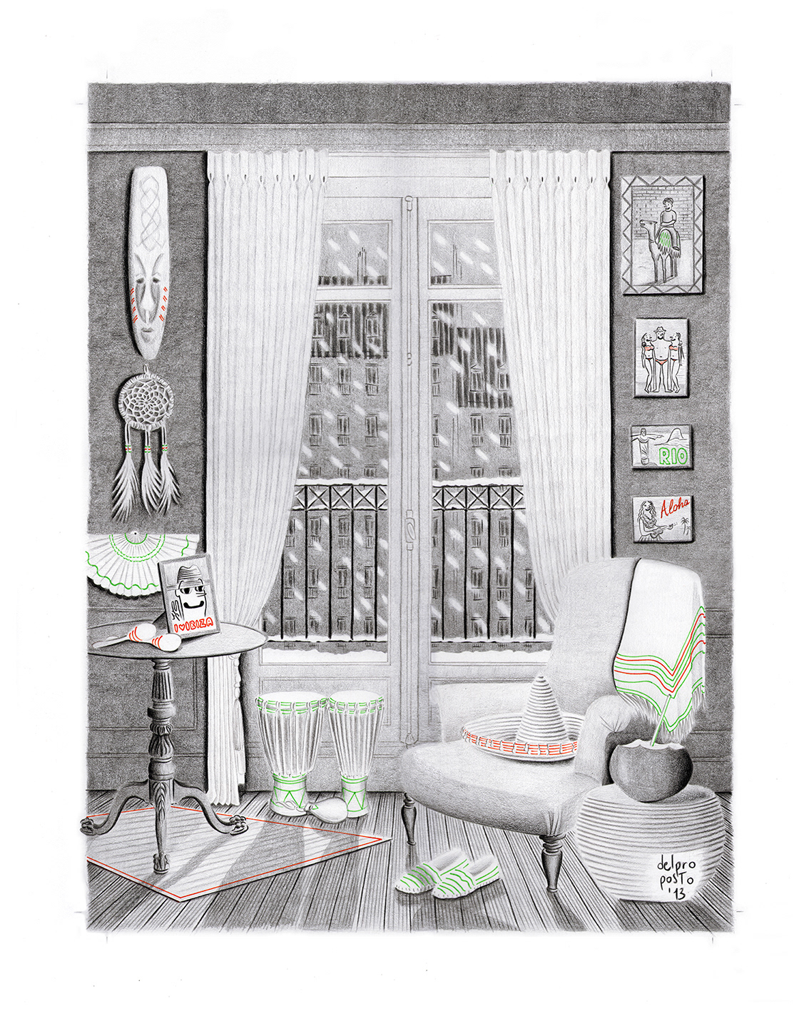 pencils and fineliners on paper, 40 x 50 cm