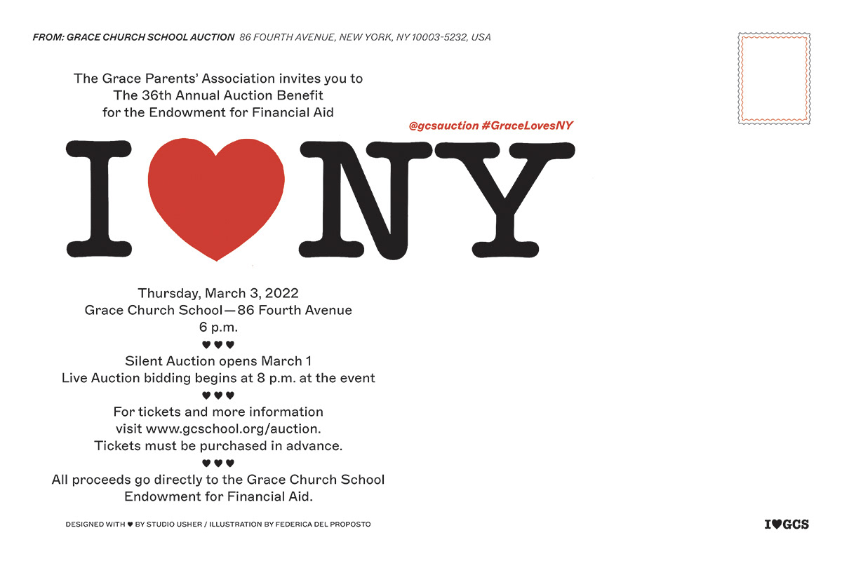 institutional invitation card and animated GIF for The Grace Parents’ Association annual benefit, New York City