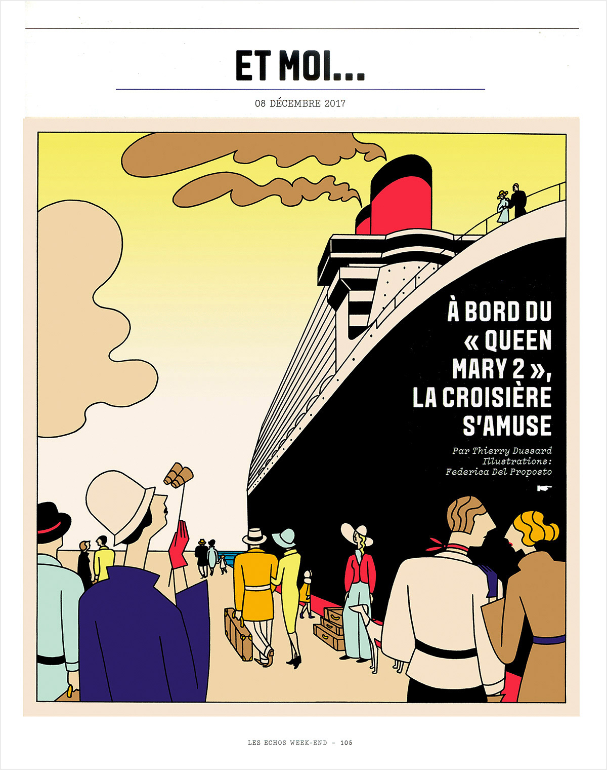 editorial illustration series for Les Echos WeekEnd column Et moi, section opener, half page